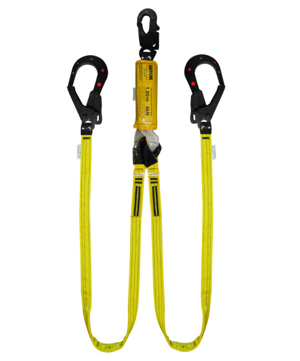 Linea de vida con amortiguador de caida 1 gancho de 3/4″ dielectrico y 2 ganchos 2 1/4″ dielectrico